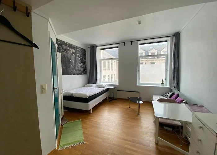 Dit appartement is op een klein stukje lopen van Werf van Bryggen Hanseatic gelegen. De dichtstbijzijnde bushalte Ladegardsgaten ligt op 250 meter afstand, terwijl de Mariakerk op 600 meter loopafstand ligt. Lille Bryggen Studio 20M² Appartement bevindt zich op rijafstand van 10 minuten van de Fløyen.